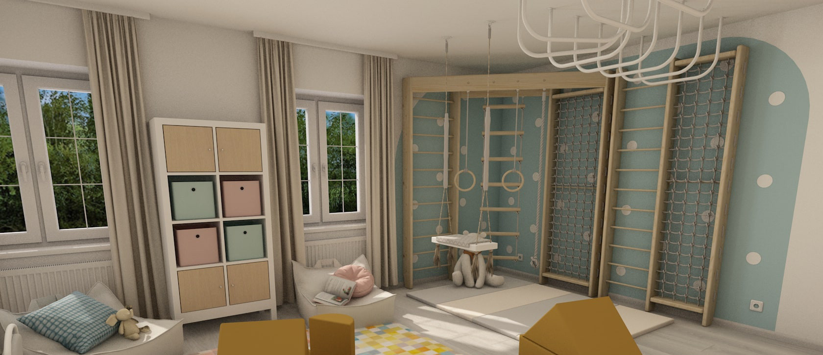 Tak lze nazvat inspiraci na dětskou hernu s průlezkami, kterou Vám dnes přinášíme. V téhle herně se snoubí nekonečná dětská energie s potřebou klidného odpočinku. Designérka Lucie Košatová tentokrát vytvořila prostornou hernu (5 x 6,5 metru) navrženou pro čtyřletého chlapce a osmiletou dívku.